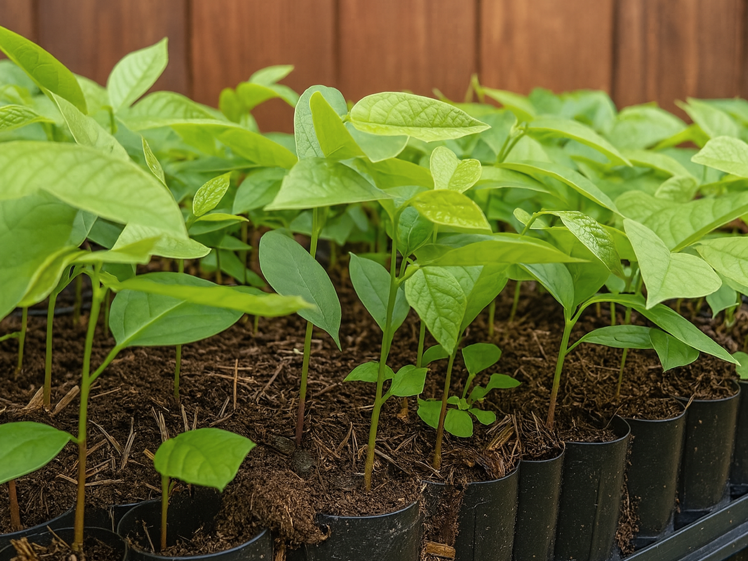 L’asiminier apprécie les sols légèrement acides (pH entre 5,5 et 7). Nous vous recommandons un mélange équilibré composé de 1/3 de terre de bruyère, 1/3 de sable et 1/3 de terreau ou compost bien mûr. Couvrez les pots d’un film plastique pour créer une “ambiance serre” et de maintenir une bonne hygrométrie, favorable à la levée. La germination est lente : comptez en moyenne 4 à 8 semaines, parfois un peu plus selon la température et l’humidité.