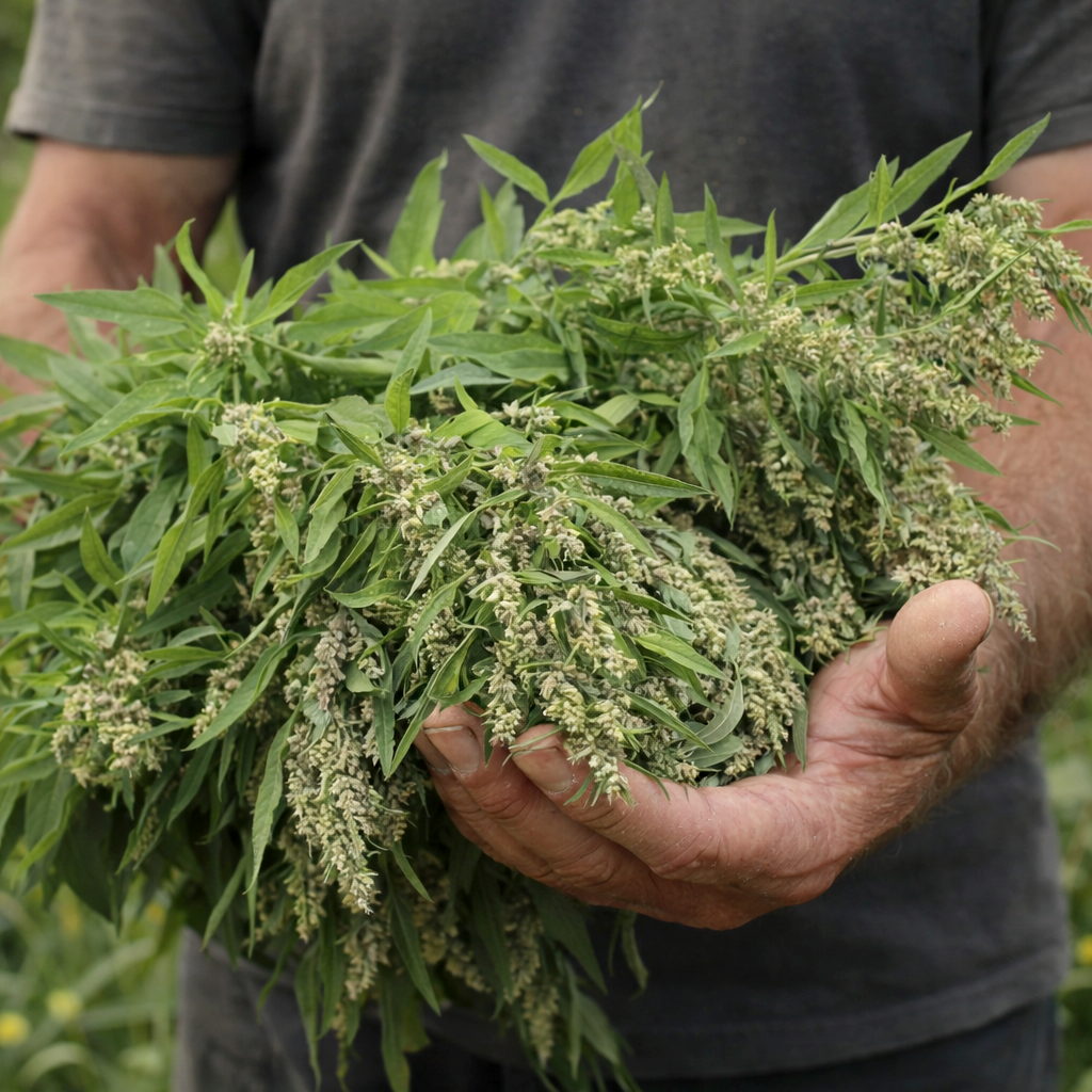 Originaire du Mexique, ce Chénopode comestible (Chenopodium nuttalliae), appelé localement "Huauzontle" est aussi connu sous les noms "Épinard des Aztèques rouge" ou "Brocoli aztèque". Culture majeure des Mexicains depuis l’époque précolombienne, il figurait parmi les récoltes les plus importantes sous Moctezuma à l'époque aztèque et servait même de tribut. Ses tiges vertes teintées de rouge portent des bouquets de bourgeons, savoureux, entre épinard et jeune brocoli.