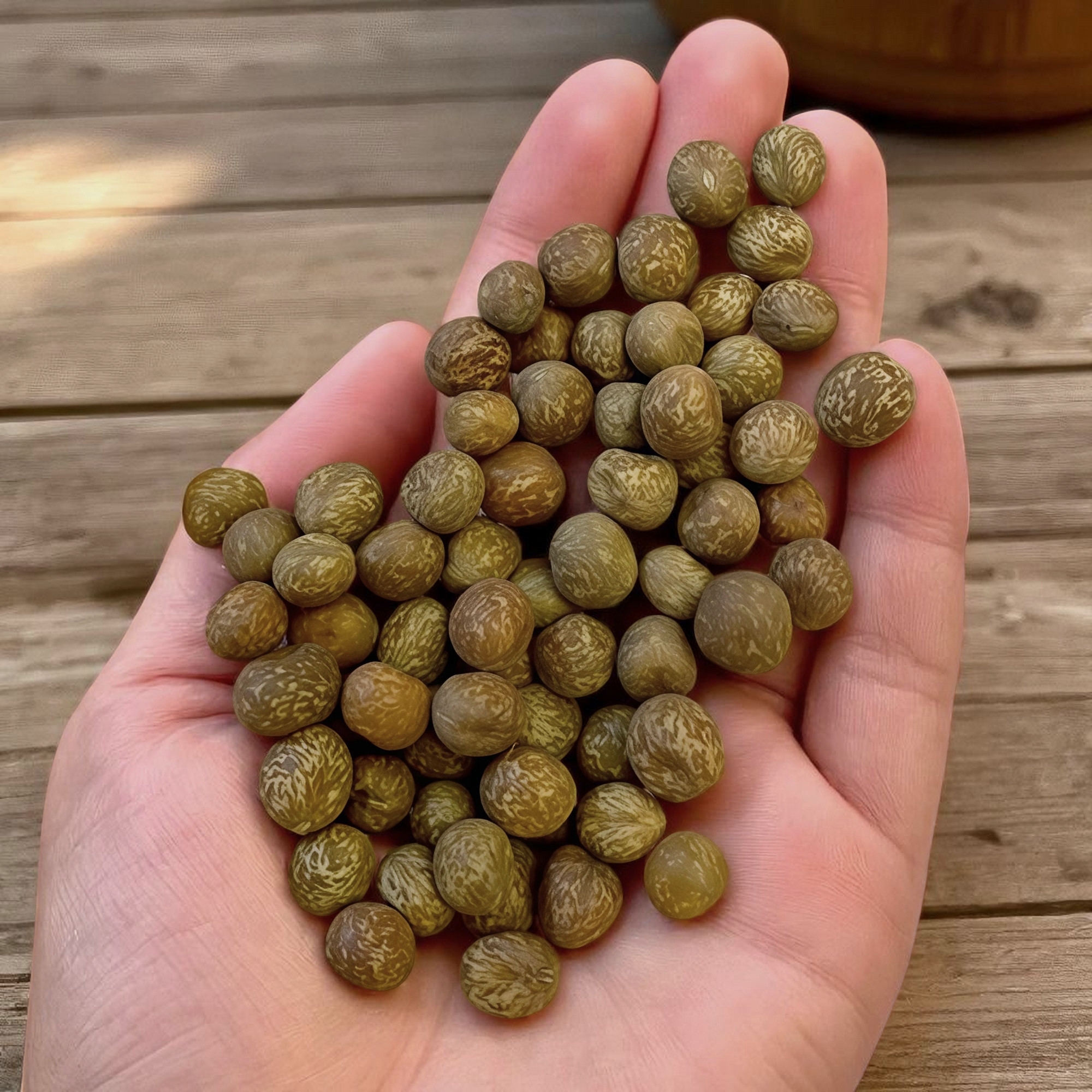 Le pois 'Crotte de Lièvre' est une variété ancienne oubliée française, redécouverte récemment. Originaire de Normandie, ce pois à rames était autrefois beaucoup cultivé et très apprécié pour sa rusticité et ses qualités gustatives. Cette variété est très vigoureuse, elle peut atteindre jusqu’à deux mètres, avec un feuillage clair et de magnifiques fleurs roses veinées. Son nom curieux vient de l’aspect de ses grains, qui ressemblent étonnamment aux crottes de lièvre, d'où son appellation originale et imagée !