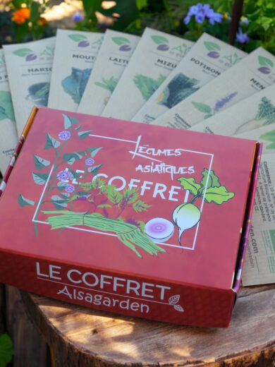 Coffrets de graines thématiques composés d’un assortiment de variétés potagères biologiques, anciennes, reproductibles et libres de droit.
